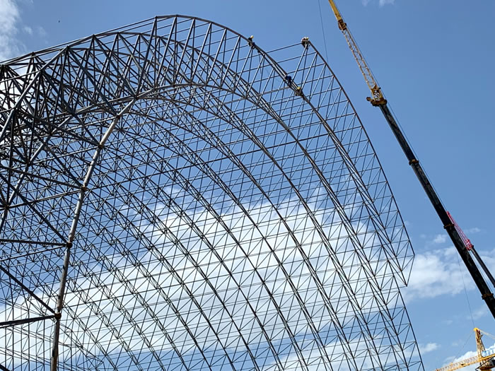 (2)网架加工前应对现场尺寸进行复测,确认无误后方可进行加工、安装;网架制作、运输、安装应遵守《空间网格结构技术规程》JGJ7-2010、《钢网架启东螺栓球节点》JG/T 10-2009、《钢网架启东螺栓球节点用高强度螺栓》 GB/T 16939-2016、《启东钢结构启东工程启东施工规范》 GB50755-2012、《启东钢结构启东工程启东施工质量验收标准》 GB50205-2020。